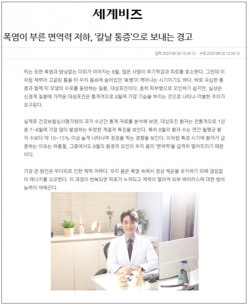 폭염이 부른 면역력 저하, ‘칼날 통증’으로 보내는 경고