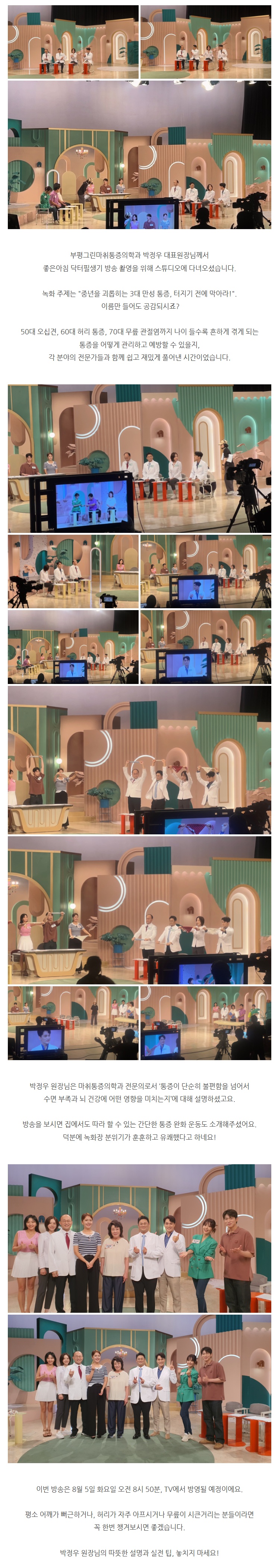 [공지사항] 부평그린 박정우대표원장님 좋은아침 닥터필생기 출연 (방송일 8월 5일 화요일) 작성일 : 2025.07.24 부평그린마취통증의학과 댓글 : 0 조회 : 482 부평그린 박정우대표원장님 좋은아침 닥터필생기 출연 (방송일 8월 5일 화요일)