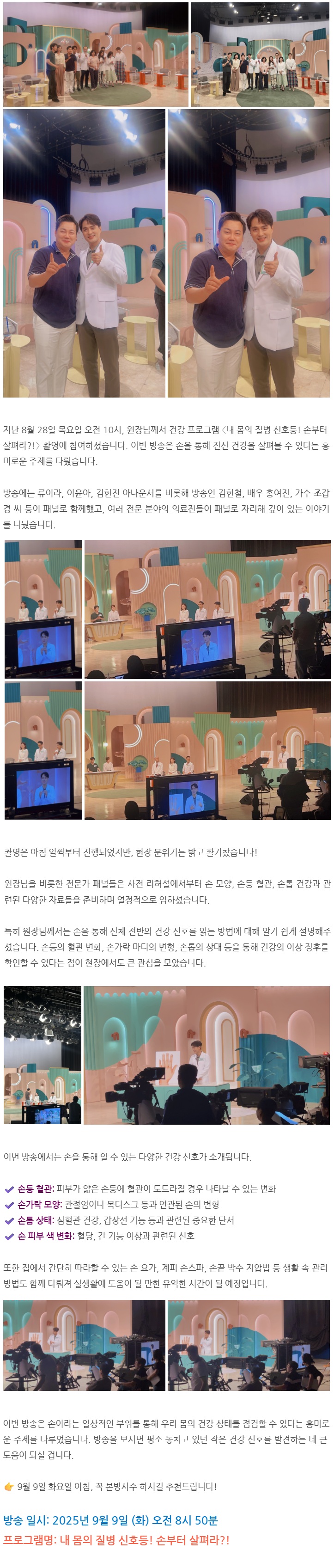 부평그린 방송 촬영 현장 스케치-좋은아침 닥터필생기 '손 건강으로 알아보는 우리 몸의 신호'